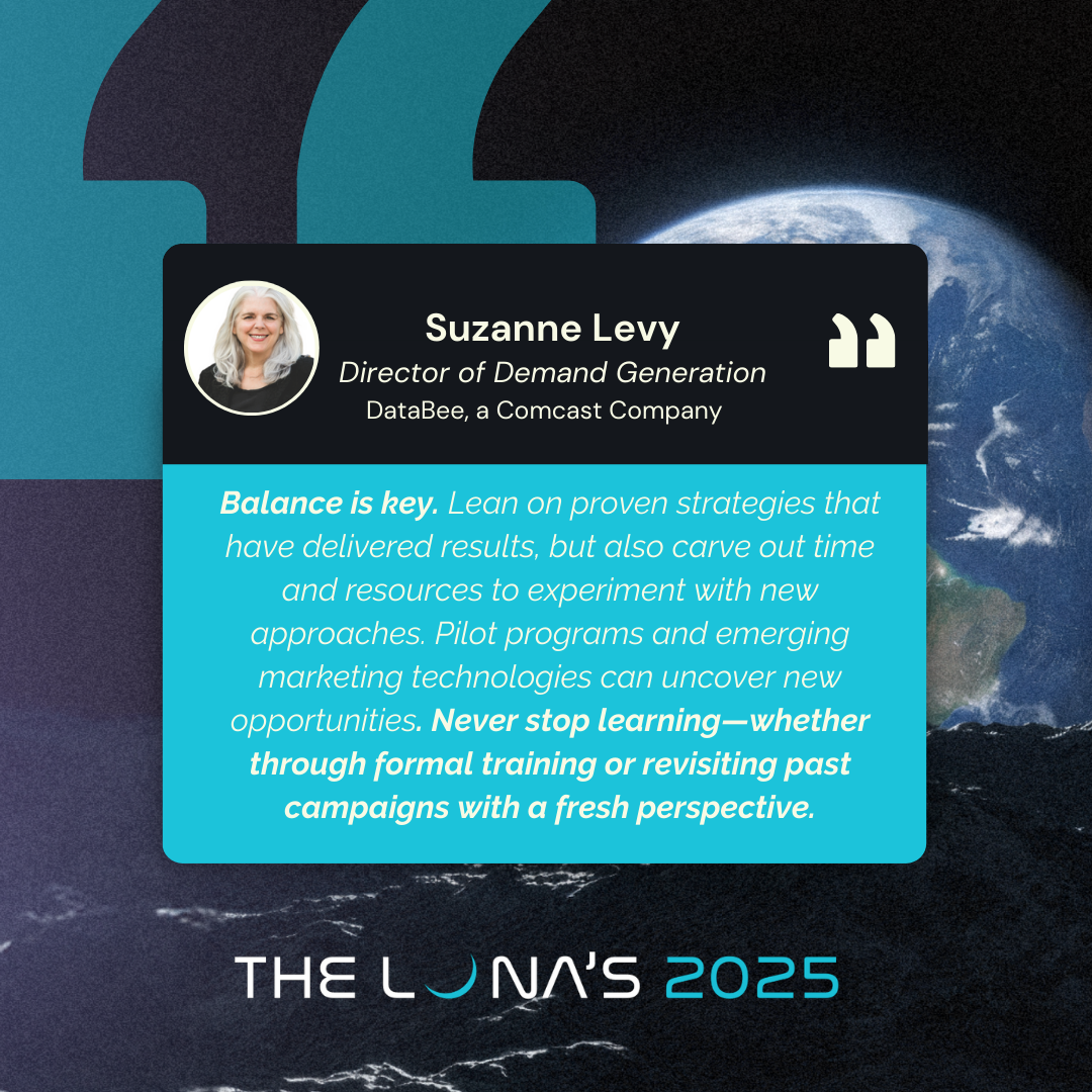 At DataBee, originality is shaped by a similar mindset. Their team focuses on evolution (testing, refining, and improving) without losing sight of what the audience expects from the brand. “We prioritize content that is educational and engaging,” Suzanne Levy said. “Balanced by a sophisticated marketing operations system that enables us to measure performance, optimize messaging, and continuously improve our programs.”